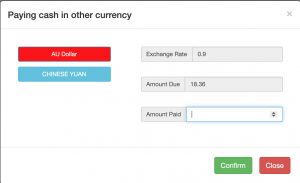 This is when the POS system is on the default currency and the customer wish to pay for the sale using a different currency. You may defined the Other payment currencies from Payments -> Other Currency Payments.