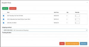 You may also choose the shipping method and enter the parcel track & trace number if you know them now. If you don’t, that’s OK, you have to chance to enter or re-confirm them again. Now click on Ship Now (blue button) to start dispatch items.