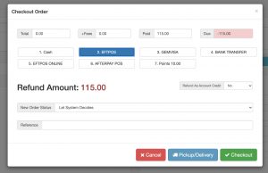 to reverse the sale. - Click on $Pay button, and select a refund method, and then click on Checkout button to complete the refund.